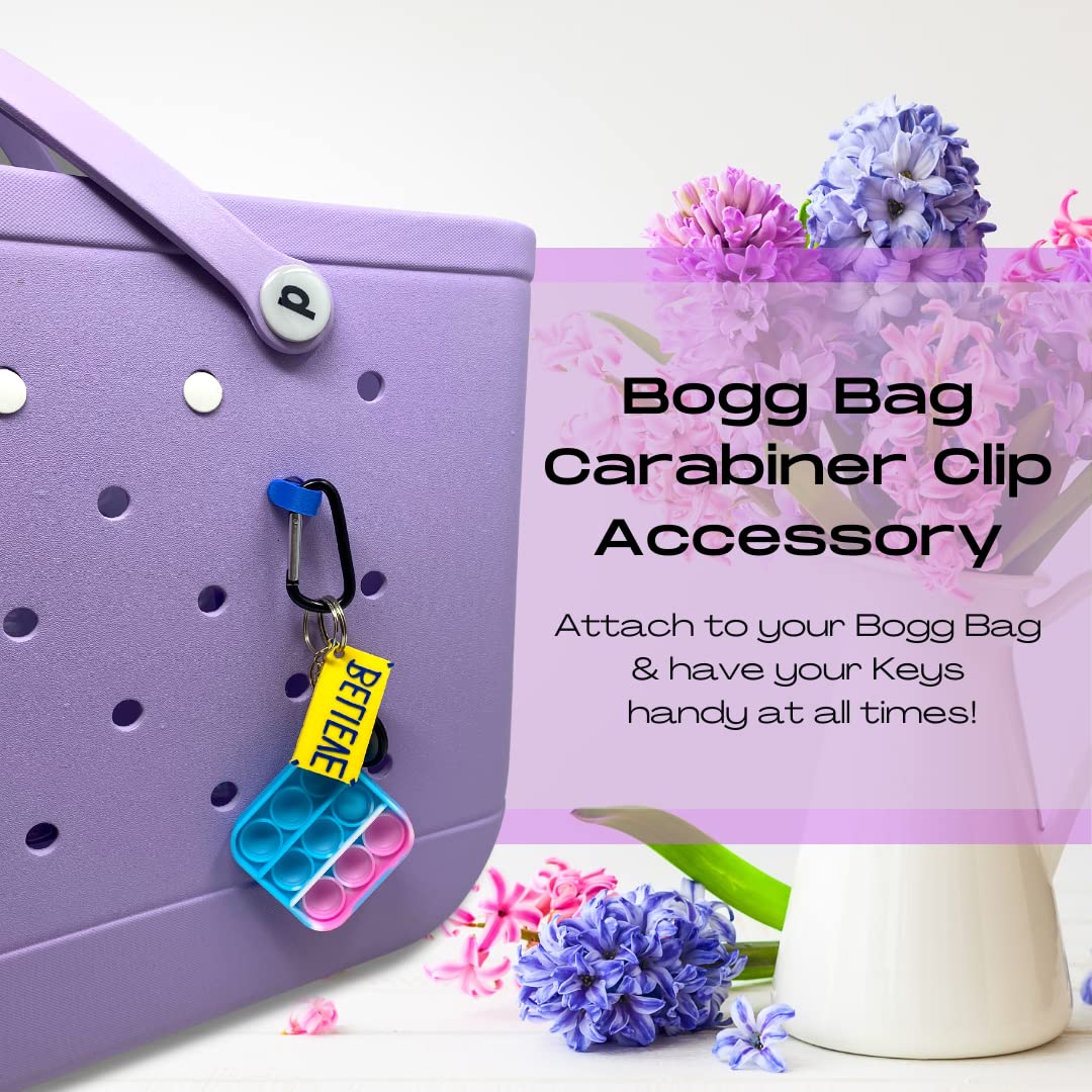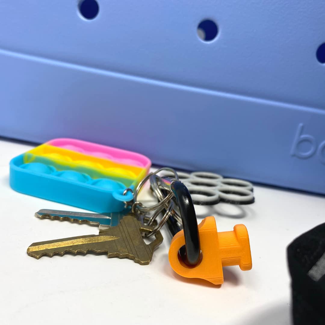 Introducing BAGLETS - the ultimate carabiner and plug keys holder charm accessory designed specifically for rubber tote bags. Keep your keys or other valuable items secure and easily accessible with this convenient and stylish accessory. Compatible with popular brands like Bogg Bags and Simply Southern Totes, BAGLETS is proudly made in the USA, ensuring top-notch quality and craftsmanship.