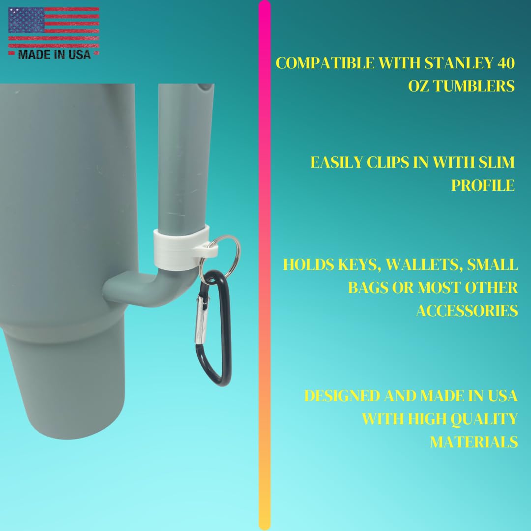Carabiner Clip Attachment Compatible with Stanley 40 oz Tumblers | Carabiner & Keychain Attachment for Holding Keys, Wallets, or Other Accessories | Made in USA