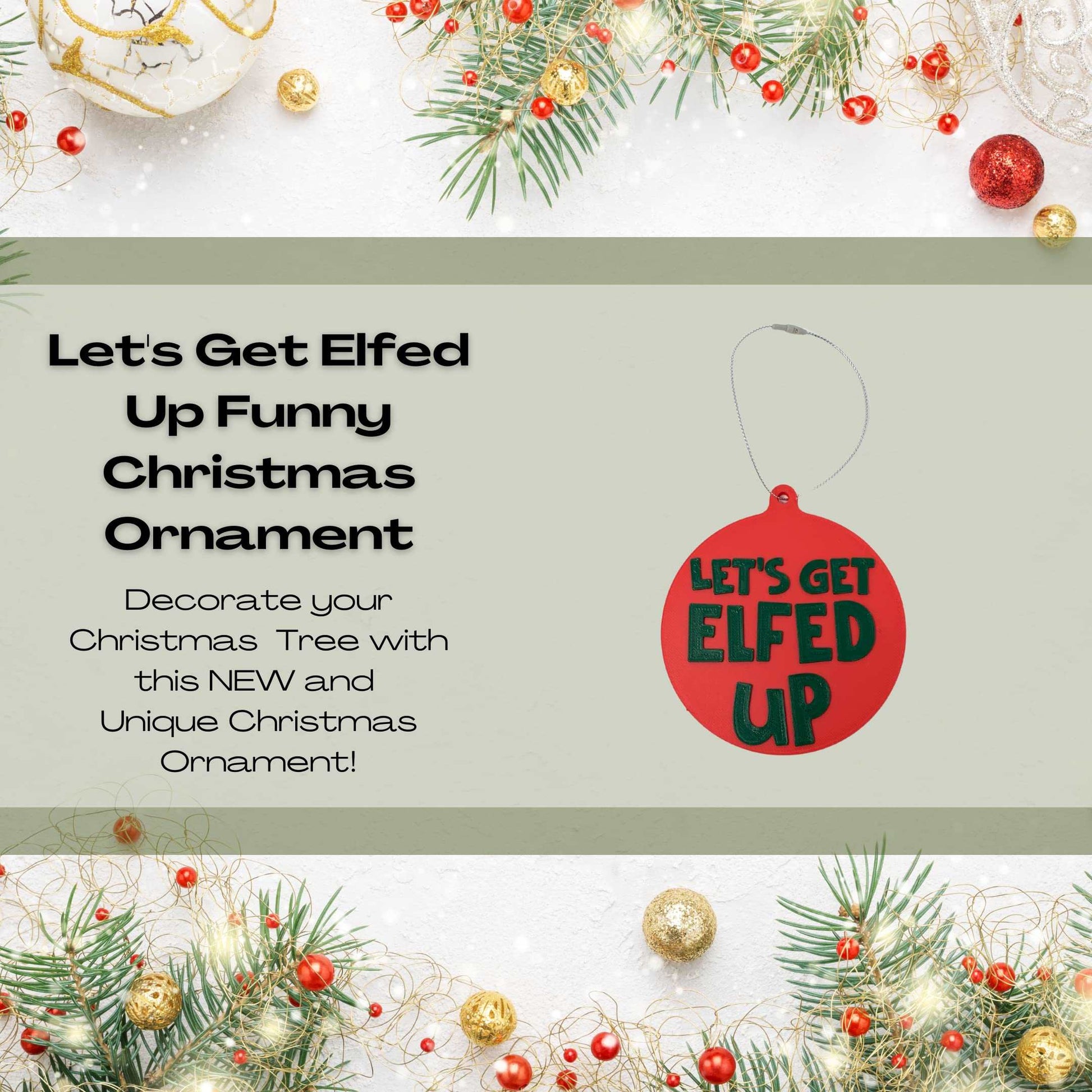 Lets Get Elfed Up Funny Christmas Tree Ornament - Perfect Gift or Stocking Stuffer for Friends or Family - Decorate Your Christmas Tree - Made in The USA