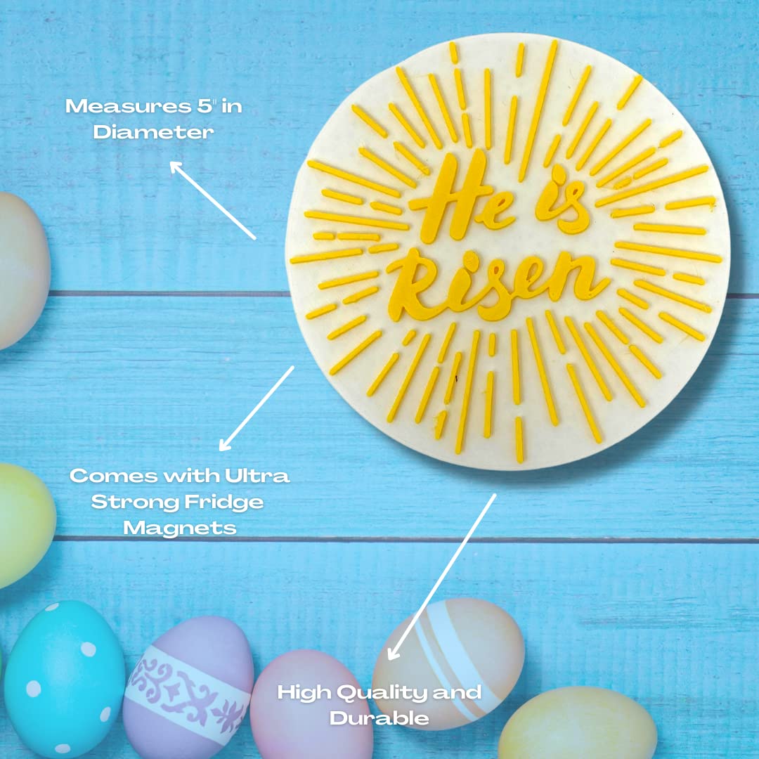 He is Risen Decorative Easter Fridge Magnet - Perfect for Decorating your Home on the Special Day - This Magnet measures 5" in diameter. Great Reminder of the Reason for the Season this Easter Holiday! This product is 3D printed using high quality printers and is made in the USA!
