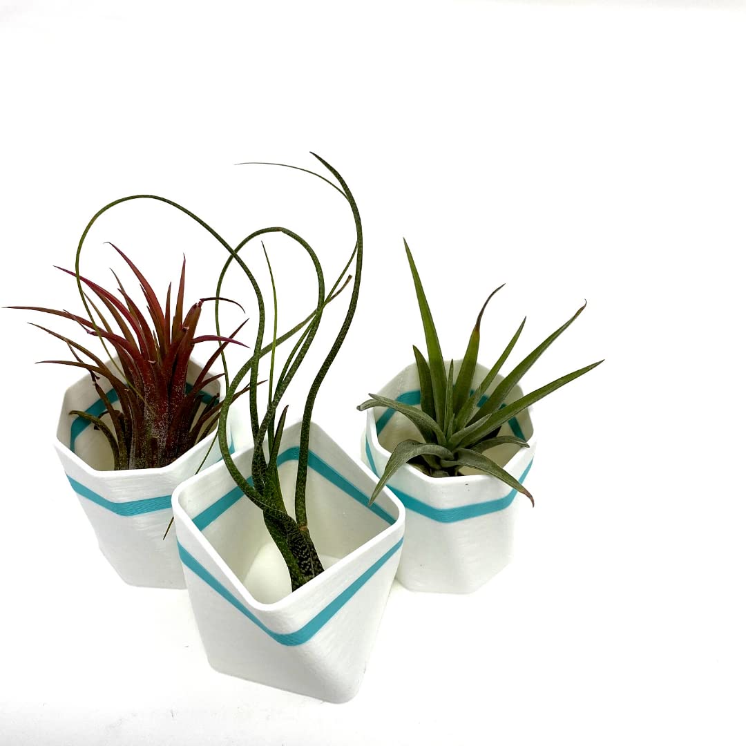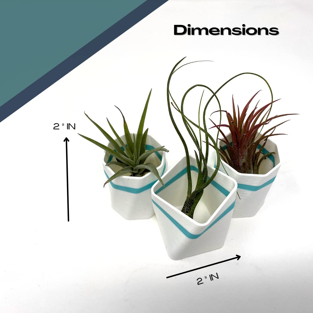 3 Pack of Air Plant or Succulent Planter Magnets with Teal Stripe Design - Each Planter Measures 2" Tall & 2" Wide. Air Plants not included. Made in the USA using High Quality Plastic & Unique Designs!