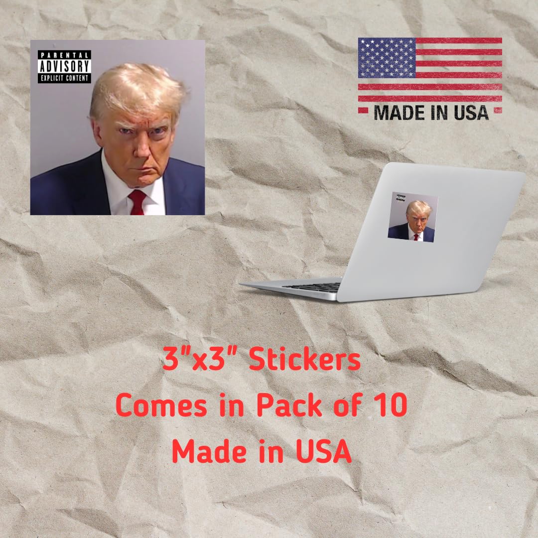 Trump Mugshot Premium Vinyl Sticker Pack | Hit Meme of 2023 | Great Gift for Friends or Coworkers | 10 Sticker Pack | Made in USA
